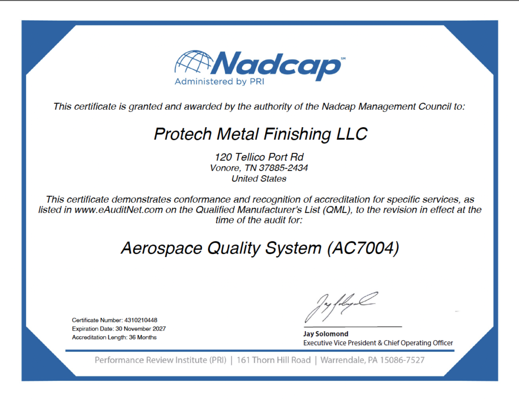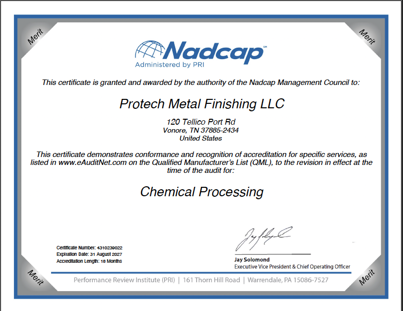 Protech is a woman-owned full-service metal finishing company that has served customers since 1980. Protech is housed in a 32,000 square foot facility on 10 acres in Vonore, Tennessee. Specializing in anodizing and rack plating. Protech services a large customer base in the Aerospace, Defense, Industrial, Medical and Automotive fields. We lead the industry in recruiting and retaining the most experienced plating and support personnel in the region.
